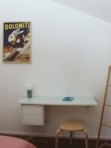 Bedroom with a double bed, storage space and a desk area (because sometimes you need to pretend you're working, or you are lucky enough to work from everywhere)